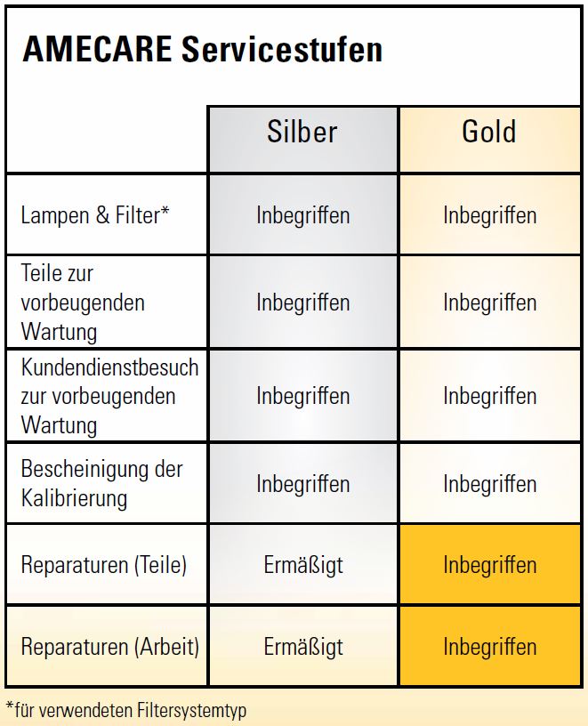 Es gibt zwei AMECARE-Servicestufen: Gold und Silber.