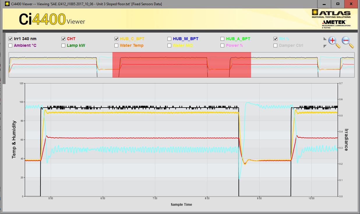 Mit WXView Reader und Ci4400 Viewer können nicht nur die üblichen Prüfparameter angezeigt werden, sondern auch Daten aus dem S³T-System (Specific Specimen Surface Temperature). Das Programm läuft auf jedem Windows-basierten PC. Sie können es ganz einfach über ein Symbol auf Ihrem Desktop installieren. Der WXView Reader kann die Daten aus den Ci3000/Ci4000/Ci5000 Weather- Ometer® mit Herstellungsjahr ab 2011, Xenotest® oder SUNTEST®(XXL/XLS)-Instrumenten auslesen. Der Ci4400 Viewer liest Dateien aus dem Ci4400 Weather-Ometer.