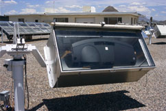- Beschleunigter Expositionsprüfungen mit kleinen Prüftafeln von laminiertem und getöntem Glas werden üblicherweise auch an Solarkonzentratoren wie EMMA/EMMAQUA in den Atlas DSET-Laboratorien in Arizona durchgeführt.