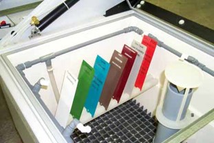 SUNTEST oder Xenotest auf Wetterbeständigkeit geprüft. Korrosionsbeständigkeit wird in Salznebel-/Korrosionsprüfkammern der Serien Atlas SF,