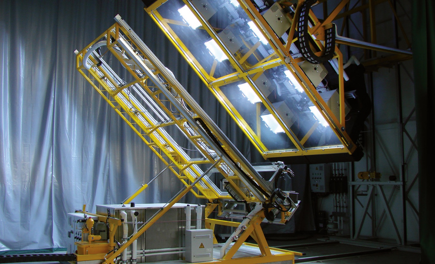 Solar-thermische Prüfungen von größeren Komponenten u. Produkten können in maßgeschneiderten Anlagen mit Solarsimulatoren basierend auf MHG-Technik durchgeführt werden. Diese werden vom Team Atlas Custom Systems entworfen, produziert und installiert. Größere Komponenten und Produkte können in großen Solar-/Klimakammern im Atlas-Labor in Arizona getestet werden.