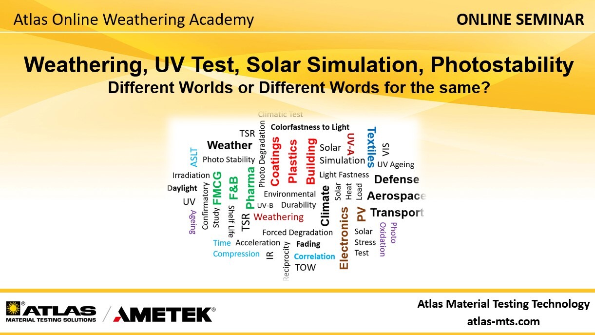Bewitterungs-Terminologie in unterschiedlichen Anwendungsfeldern – Atlas Online-Seminar - Englisch