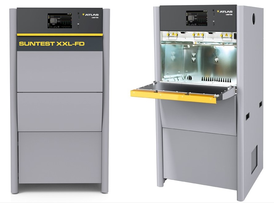 Atlas SUNTEST XXL-FD ist ein extra großer Lichtstabilitäts-Prüfkammer, die speziell auf die Anforderungen von Konsumgüter-, Lebensmittel- und Getränkeprüfungen zugeschnitten ist. Die Flachbett-Expositionsfläche von 3000 cm